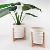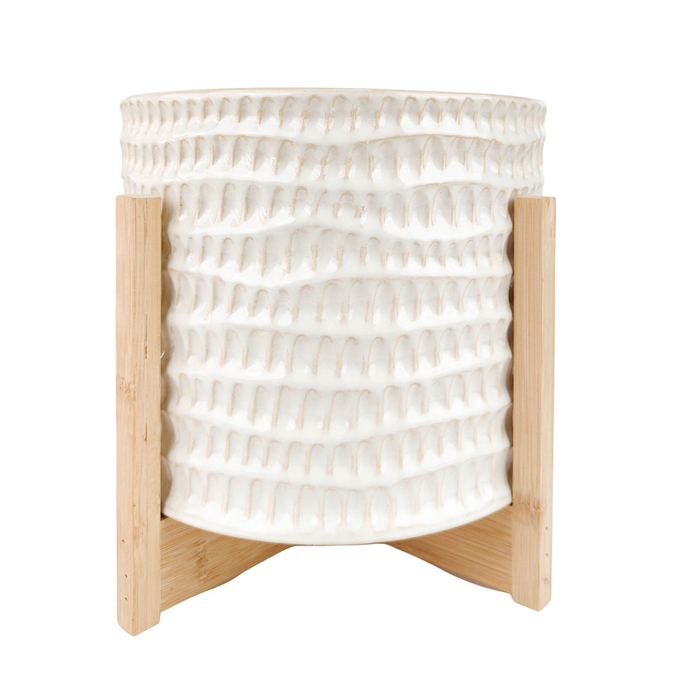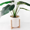The gorgeous Everly planter will easily bring a point of interest to a space, with a textured finish and contrasting wooden legs that offset the white pot and give it lift.