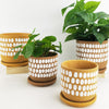 If you’re looking to add earthy tones and texture to your space, this is the pot for you. Each one is unique with hand painted white dots. This pot has a drainage hole and includes a saucer.