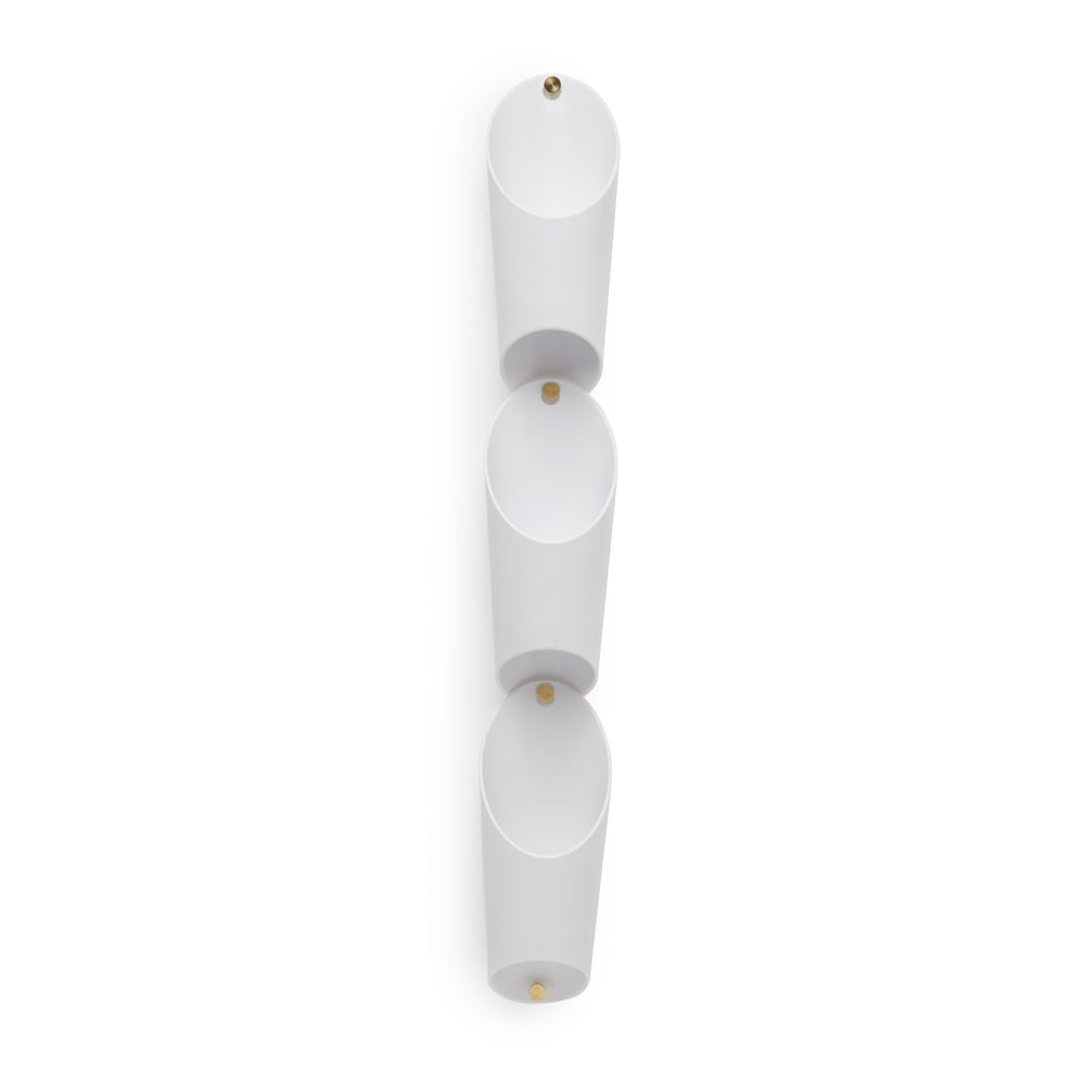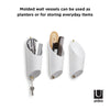 A set of three wall vessels that combine and link together. These can be used as a practical storage solution or as a decorative element.